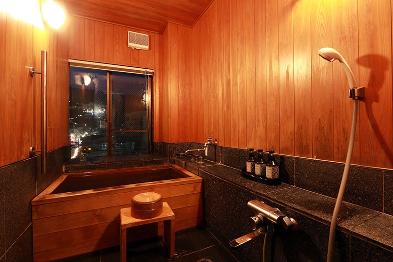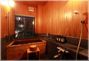 それぞれに古代檜風呂を備え、いつでもお好きな時間に天然温泉をご堪能頂けます。